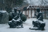 一日,舍利弗与维摩诘辩论不二法门,辩论到最精彩处,天女...